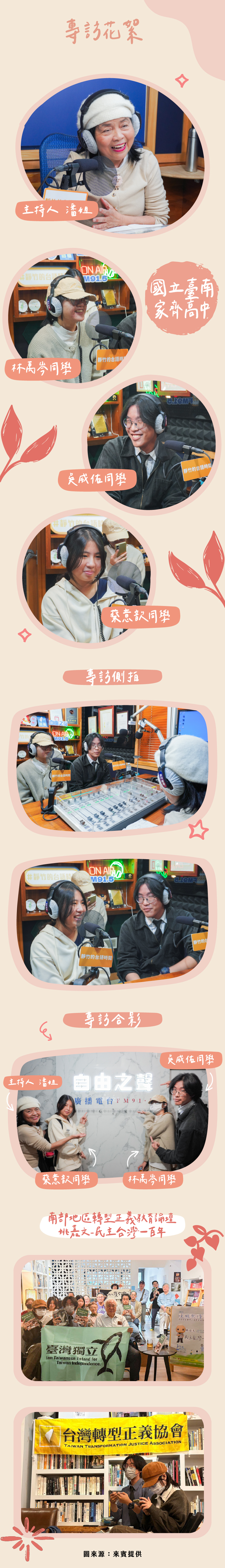 除了校園事務也展現對社會議題的深刻關懷,包含研究轉型正義中的受難者家屬創傷以及對貧富差距與社會特權的觀察。節目上集一起來聽聽新一代學子在學業壓力之外,如何透過社團活動與田野調查建立自我價值,並在理想與現實間尋求平衡。